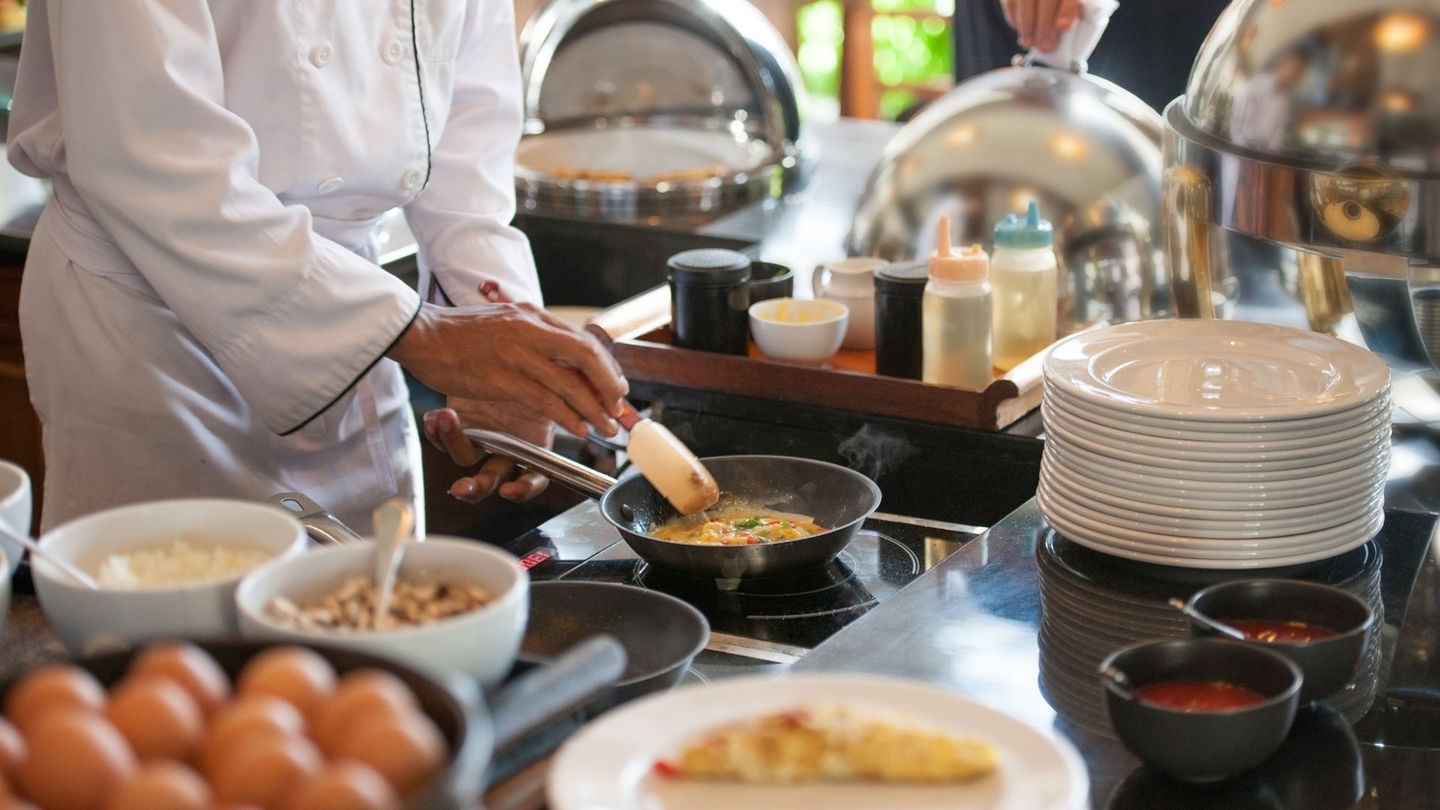 Preparar uma variedade de pratos para um buffet de café da manhã.
